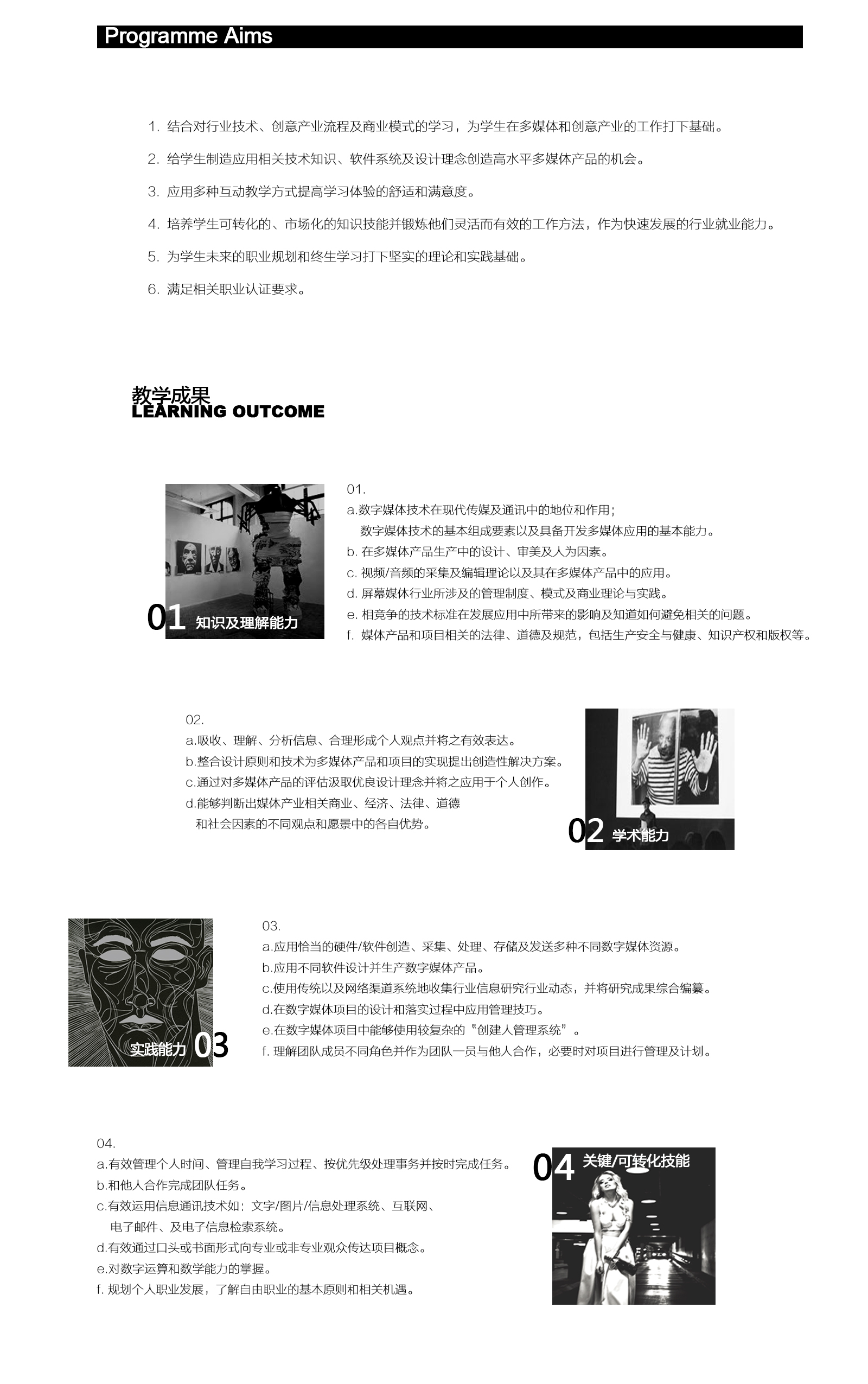数字媒体技术以培养拥有多种跨领域技能的毕业生为己任; 为学生提供必须的知识储备以便其能够设计、开发多媒体内容及应用。课程重点教学内容包括:网页及互联网应用、动画及3D建模、视频制作、媒体技术。经过专业学习,毕业生将有足够知识和技能进入包括多媒体开发、网络应用开发、3D建模工程师或媒体技术在内的多个行业工作。部分学生亦能选择进一步深造。